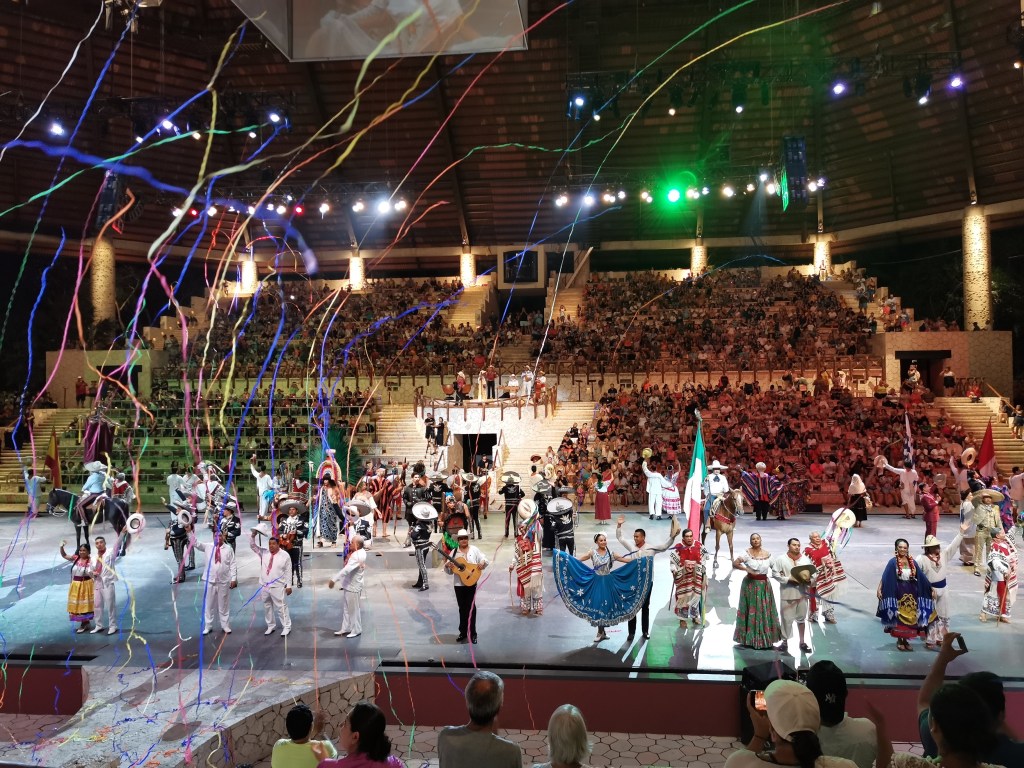 Entre sus atracciones únicas, Xcaret tiene un espectáculo llamado “México Espectacular” que ha sido visto por 22.5 millones de personas en más de 10,000 presentaciones en las que participan voladores de Papantla, jugadores de juego de pelota, cantantes, mariachis, danzantes prehispánicos, jinetes, charros y amazonas.