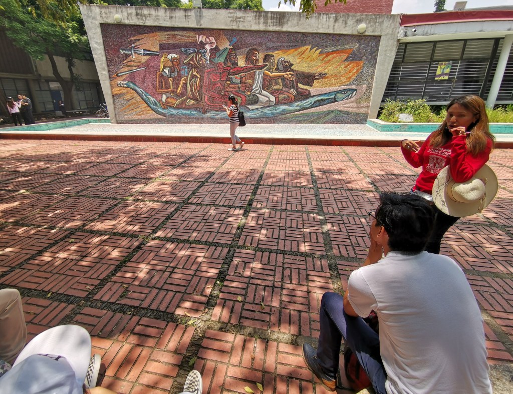 Durante un par de horas, ellos, junto con Mauricio, estudiante de Comunicación, muestran y explican a los visitantes los lugares más representativos del campus central de la UNAM, que el 2 de julio de 2007 fue declarado Patrimonio de la Humanidad por la Unesco.